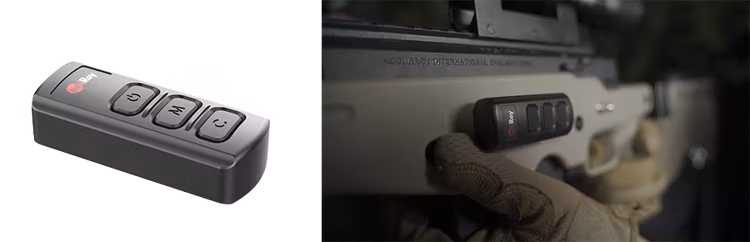 Infriay Front Attachment har även en fjärrkontroll som man kan montera på stocken och på så vis sköta enheten utan att ta änderna från vapnet, denna kan köpas som tillbehör